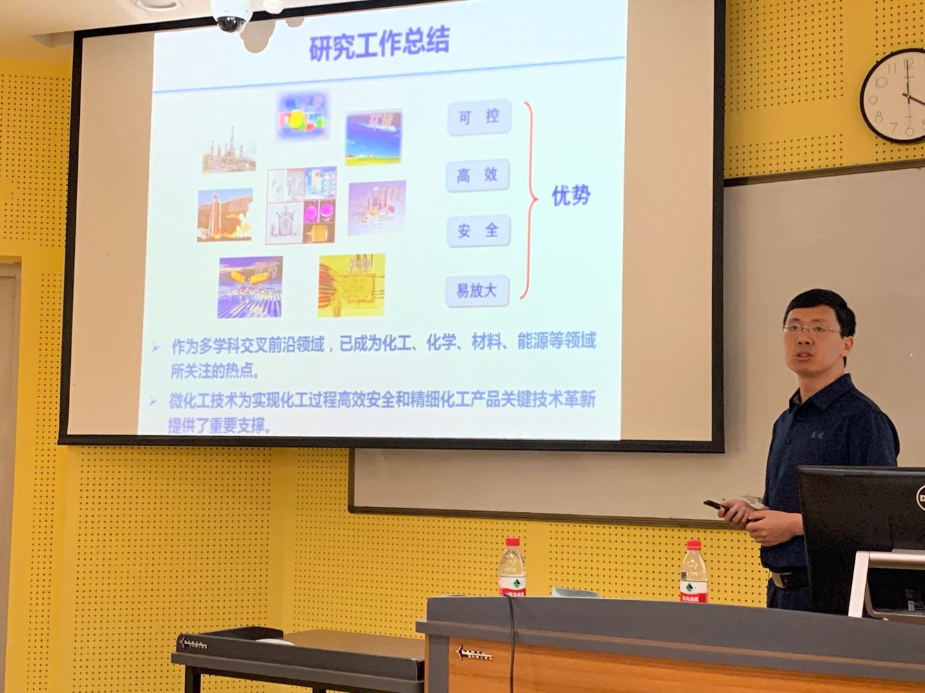 徐建鸿教授是国家级高层次青年人才计划获得者,主要研究方向是微化工过程与多相微流控技术,主要致力于多相微分散与传质过程基础及其工业应用研究。在大讲堂中,徐教授为大家带来了其研究团队在微化工技术方面的最新研究进展,详细地介绍了基于多相微流控平台所开展的关于微尺度多相流动、分散和传递性能的应用基础研究,以及在多相微分散新方法、微尺度分散和传递特性及其内在机理等方面取得的系列进展。接着,徐教授介绍了微化工技术在功能材料制备和化工原料生产方面的用途,详细介绍了其在前期基础理论研究指导下所开发的新型微结构化工传质设备,以及该设备在己内酰胺萃取分离等大型化工生产过程中的应用,并在最后对微化工技术在工业应用方面的前景和所面临的挑战和机遇进行了展望和探讨。