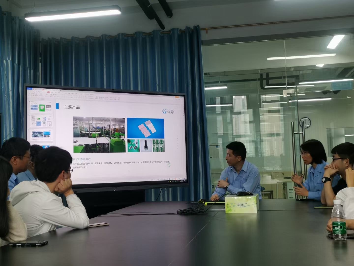 到达三环研究院后,三环集团孙总、梁总热情接待并表示欢迎。随后,孙总、梁总及几位高级技术人才与李颖丽老师一行在三环研究院二楼进行茶歇会,并观看公司宣传片,与李颖丽老师及随行学生开展面对面的座谈会。座谈会中,污污漫画