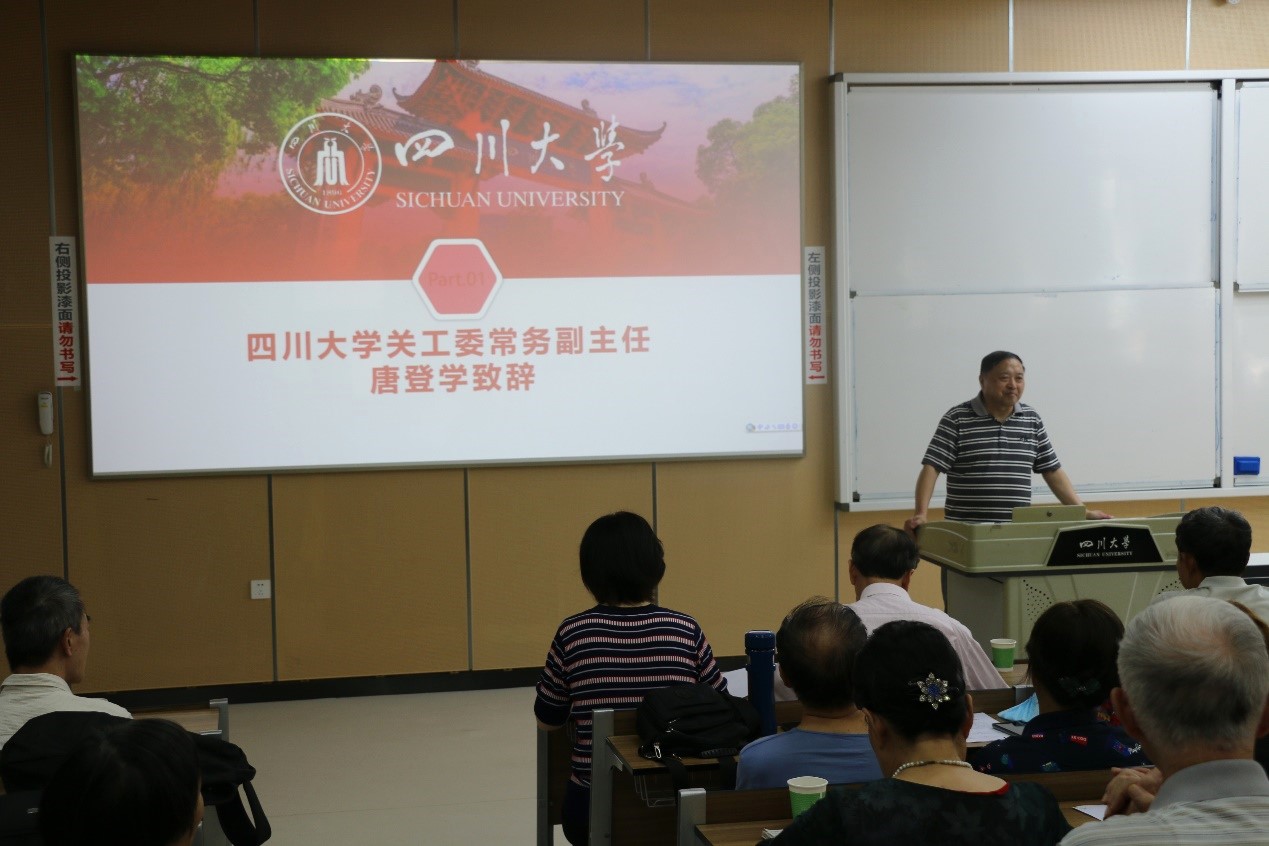 图2.学校关工委常务副主任唐登学老师致辞