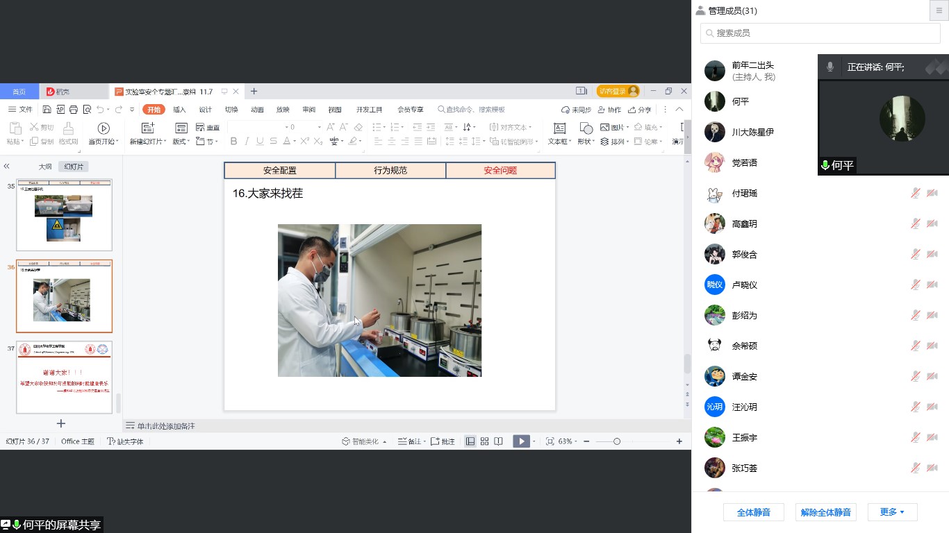 膜科学与功能材料研究室于2021年11月7日下午组织召开“实验室安全教育”线上专题培训,培训对象为即将进入实验室的毕业论文和大创实验的本科学生。