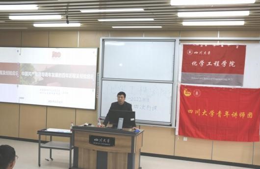 第三部分“新时代青年成长发展的经验启示”讲解中, 苏德强书记分享道,在新时代,中国共产党正领导青年成为实现中华民族伟大复兴的先锋力量,如“嫦娥”团队、“神州”团队、“北斗”团队、“七一勋章”获得者黄文秀与陈红军等,他们将最美好的青春岁月献给了党和国家的发展,是我辈川大青年学子的楷模。