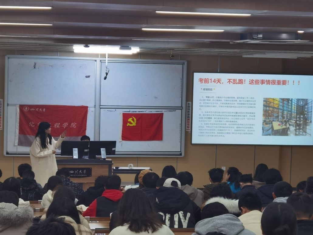 在考研复习冲刺阶段,学院学工组和学生党支部为考研学子精心制作了加油打气视频。短短三分钟的视频,凝聚了化工人对考研学子的殷殷期待。“研”途同行,有大家相伴。相信这些或稳重或亲切或搞怪的祝福,定能成为大家考研路上的动力。