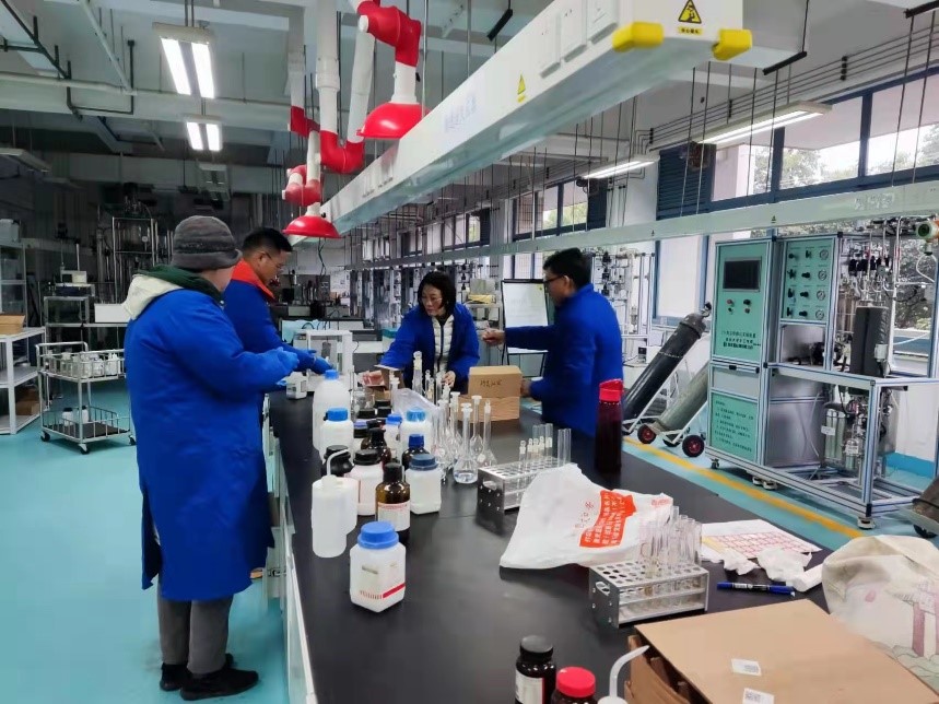 现场会上,首先集中讨论了上一学年本课程在实际运行过程中出现的问题,共同讨论解决方案,并提出改进建议;接着,全体老师穿上实验服,带上手套,仔细清点了实验药品和用品,并配制好本学期前半段学生实验所需要的全部试剂;最后,全体老师分为两组,按照预设实验方案并行完成了全程预实验,并就实验有关细节问题进行讨论和改进,确定了本学期实验教学的最终教学方案。