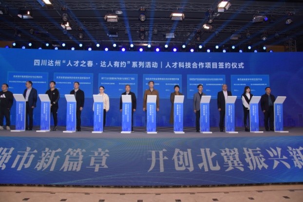 3月30日四川省达州市举办“人才之春·达人有约”系列活动之人才科技合作项目签约仪式,化工学院受邀出席。该活动是达州推动科技创新和人才引进的重要活动之一,市委书记邵革军、市长严卫东带领达州市委市政府等重要部门领导出席。此外,活动还邀请到四川省教工委副书记李国贵、四川省科技厅副厅长杨品华、哈尔滨工业大学马军院士等嘉宾。化工学院委派副院长郭孝东参加并在会做了发言,学院杨林副教授、吉旭教授团队等相关老师出席并参加了项目签字仪式。