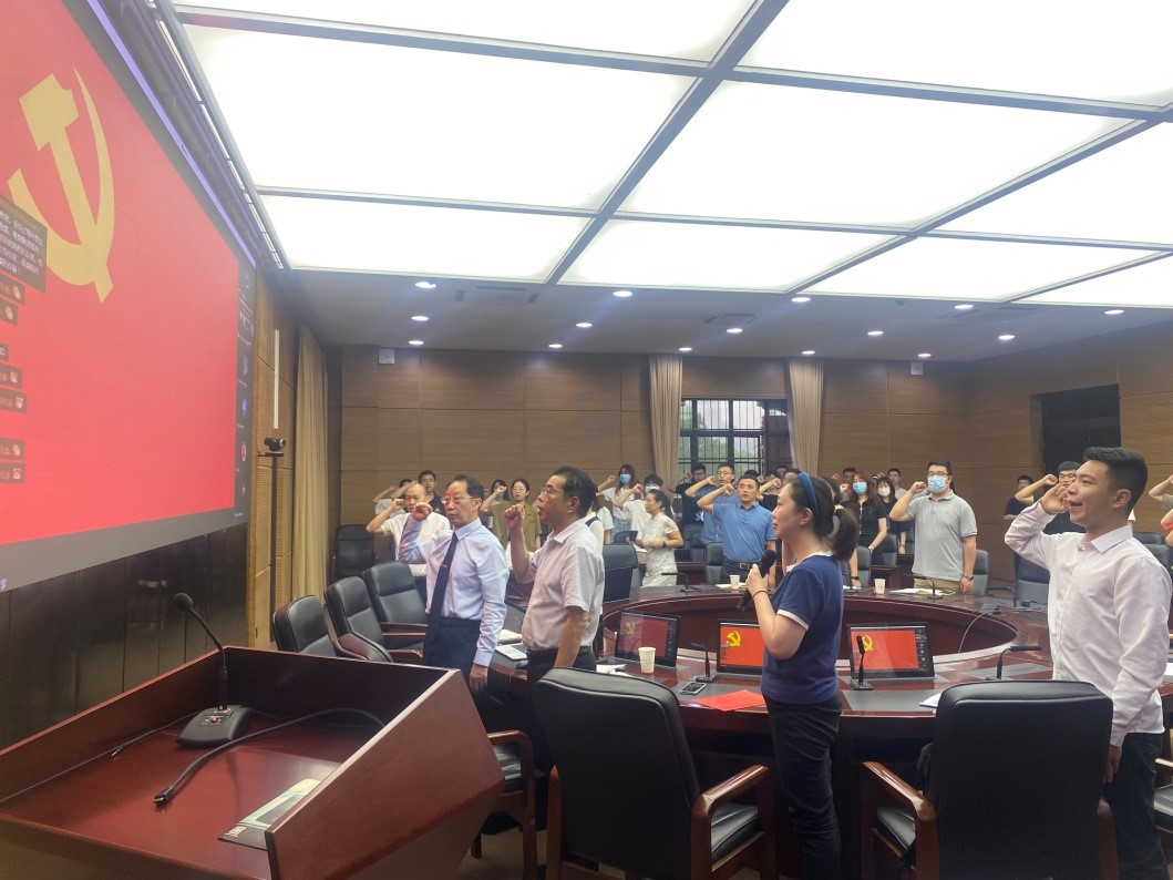 随后,由姜利寒同志带领毕业生党员重温入党誓词。与会师生党员全体起立,面向党旗并高举右手,在响亮的誓言中坚定党性、坚定理想、坚定信念、坚定追求。
