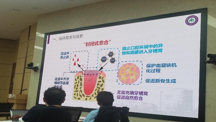 论坛会议上,李天友与华西口腔医学院副书记林云峰首先对双方参会人员进行详细介绍。随后,李精韬、李娟、舒睿、杨惠、甘雪琦、谢利等华西口腔的老师分别就其科室的临床需求和科研瓶颈进行汇报,内容包括颌面组织修复、骨关节炎、骨修复材料、线粒体重编程和牙美白等。会议后半段由穆畅道、吉旭、李向阳、姚舜、王贵欣、邓怡等6位化工的老师,分别就其研究方向、科研成果进行交流汇报,并对“口腔-化工”学科交叉合作前景做出展望。会议过程中,参会同志对其各自感兴趣研究领域及观点进行交流,对科研中遇到的问题和解决办法进行讨论,对如何加强“医-工合作”进行进一步探讨。在畅所欲言中,本次交叉论坛的学术氛围被推至顶峰。