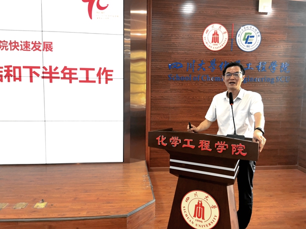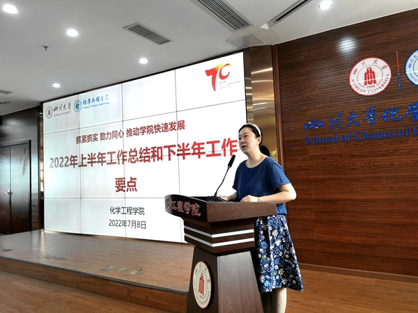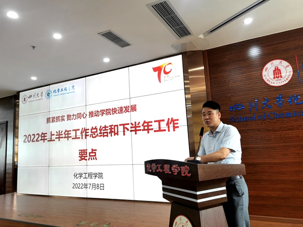 在望江校区化工楼313报告厅组织召开全院大会,总结2022年上半年工作,部署下半年工作。学院全体班子成员、工会主席、杰出教授钟本和、离退休教师代表和全院教师等参加会议。会议由学院党委副书记兼纪委书记李德富主持。