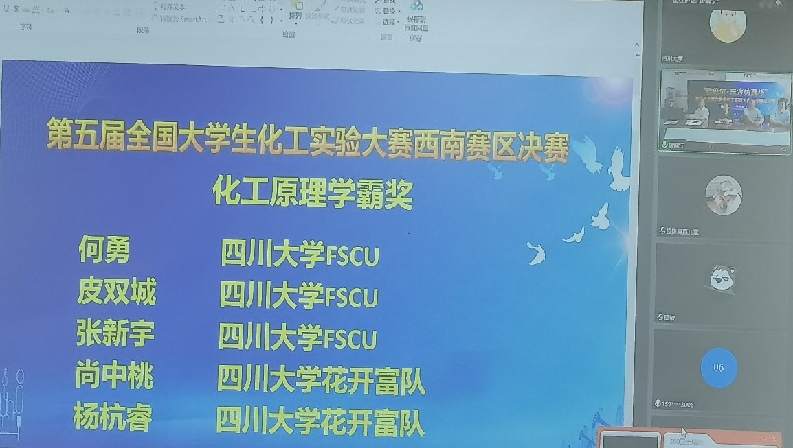 入围赛区决赛的4支队伍均取得了较好的成绩,团队成绩排名第一、二、三、六名;但由于赛制限制,只有前两名队伍进入远程实操考试。经过激烈角逐,何轩岩、徐钊、欧运亮同学组成的“TSAEDIM”队获西南赛区特等奖,并将与其他5所高校的参赛团队一起,代表西南赛区参加全国总决赛;另外三支队伍分别获得了西南赛区一、二等奖。此外,本次赛区决赛化工原理学霸奖5名全部由污污漫画