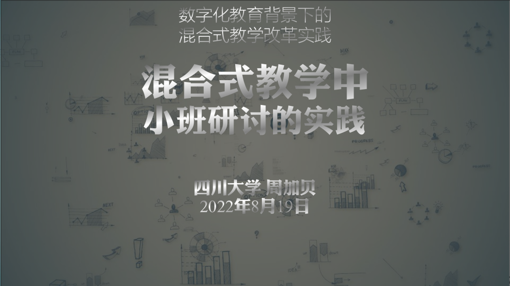 教师教学发展中心林祎老师以“数字化建设为支撑高质量教育体系是应对新阶段人才培养挑战的必然选择”为主题的发言,随后由西南交通大学本科教学工作委员会主任龚晖教授、成都师范学院美术学院党委副书记马涛教授、西华大学全国五一劳动奖章获得者唐丹副教授、西湖大学权新峰博士及本学院周加贝副教授做研究专题报告,报告题目依次为《作业我来改,奖金您拿走》、《课程运行中的混合式教学改革实践》、《基于师生共同体理念的MIF混合式教学模型的建构与实践》、《混合式教学中学生的认知改变》和《混合式教学中小班研讨的实践》。从混合式教学设计、教学实施、考核评估设计等方面进行了分享,通过理论与实操相结合的方式,帮助任课老师厘清混合式教学创新的内涵、路径及常见方法,介绍使用工具,实现高阶人才培养和有效研讨。会议由周加贝副教授主持及总结发言,并针对老师在线提出的问题进行解答。