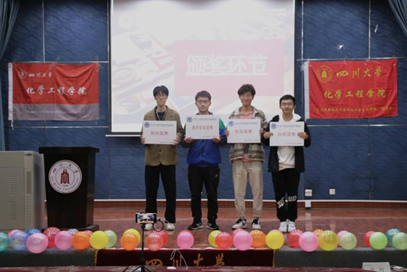 最后,经过细致的计分,焦急的等待,终于迎来了激动人心的颁奖环节。102班荣获一等奖,502班荣获二等奖,202班、306班喜获三等奖。最后与会工作人员合影留念,此次比赛圆满结束。本次活动的成功举办在提升各班班级凝聚力、加深同学们对化工学科理解的同时,也为污污漫画