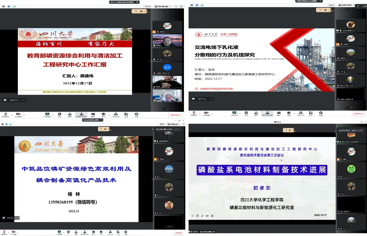 2022年12月17日上午,教育部磷资源综合利用与清洁加工工程研究中心(以下简称“中心”)第四届技术委员会第三次会议暨2022年年会顺利召开,会议以线上方式进行。
