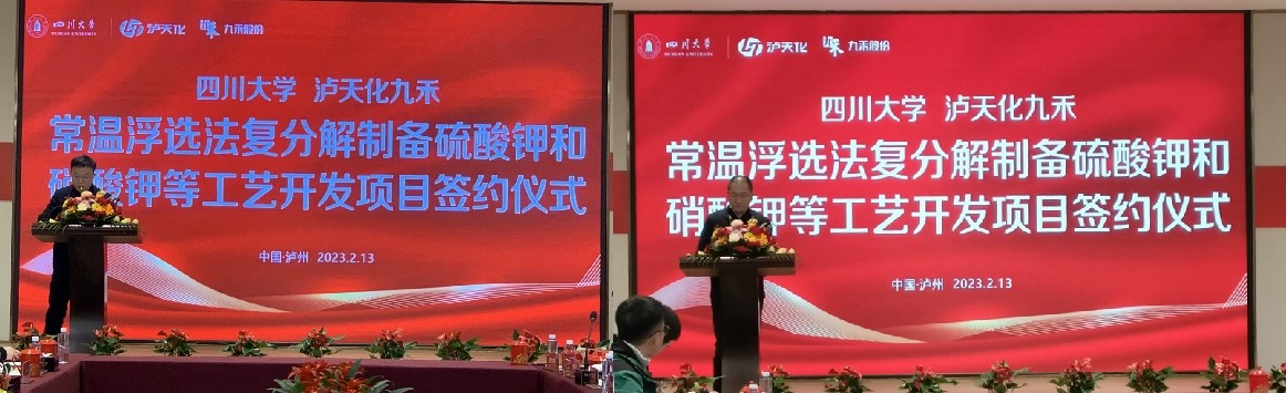 最后,蒋炜教授和九禾公司冯学宁总经理签署了《常温浮选法复分解制备硫酸钾和硝酸钾等工艺开发合作协议》。