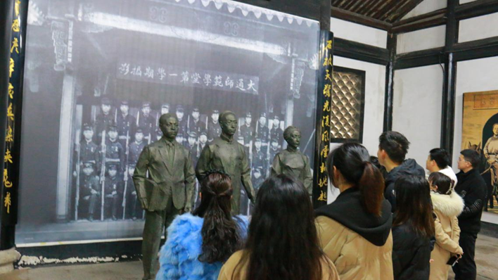 第四站,来到蔡元培故居。蔡先生提倡新学,创立了爱国学社,从事革命和教育活动。从排满到抗日战争,先生之志在民族革命;从五四到人权同盟,先生之行在民主自由。团队瞻仰蔡先生的雕塑。“中国为一人,天下为一家”是蔡元培先生渴望中国强大的终极愿望。当中国人民都团结起来,中华民族则繁荣富强。