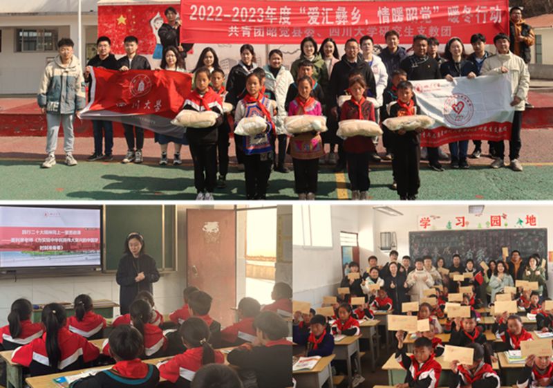 第24届支教团团长周一山的陪同下,学院师生带着106套暖冬计划爱心物资及60封化工青鸟笔友信,走进三河小学开展“爱汇彝乡 情暖昭觉”活动。学院姜利寒在三河小学教师吴利梅(2022年全国五一劳动奖章获得者)所带的班级,进行了一堂题为《为实现中华民族伟大复兴的中国梦时刻准备着》生动而有趣的思政课。无论大学生还是小学生,都应“刻苦学习知识,坚定理想信念、磨练坚强意志、锻炼强健体魄,为实现中华民族伟大复兴的中国梦时刻准备着”!随后,师生将60封笔友信发到小学生的手中,希望这一封封信,成为“大手拉小手”的纽带,成为一条条走出大山的通道,让“扶志”与“扶智”,在爱的土壤中延续和传递。