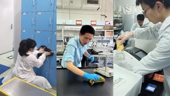 第一基础实验楼的实验室。志愿者们分工合作,对大型仪器表面,实验室桌椅、柜子进行了擦拭和整理,对地面进行了清扫工作。在三个小时的清扫过后,实验室焕然一新,活动取得圆满成功。通过此次志愿活动,志愿者们近距离地接触了实验室的相关仪器,增强了动手能力,为后续的学习生活打下了坚实的实践基础,与此同时也践行了志愿服务精神。
