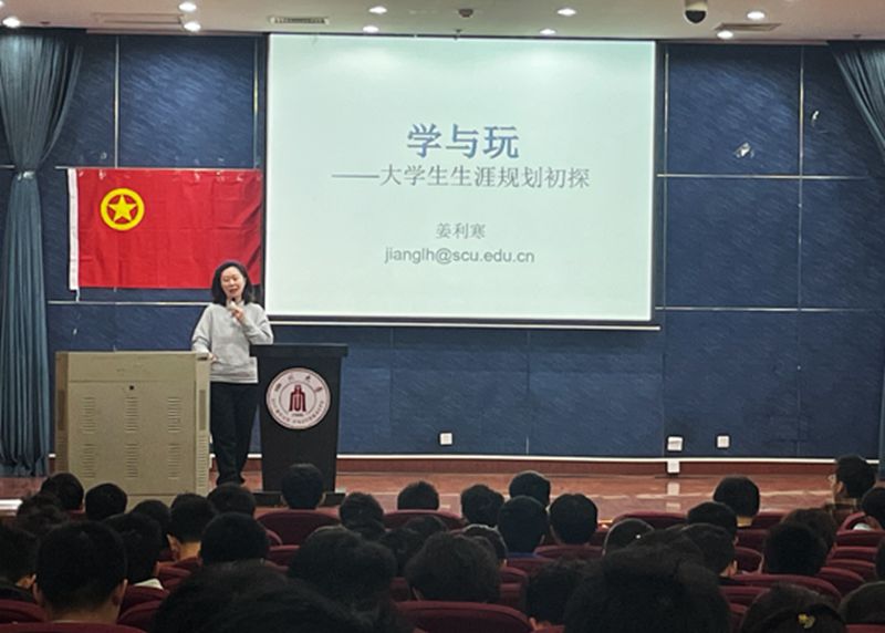 党委副书记姜利寒老师以“学与玩——大学生生涯规划初探”为主题开展了精彩的讲座。学院辅导员李忆雯、袁玲以及22级本科生参与了此次专题讲座。