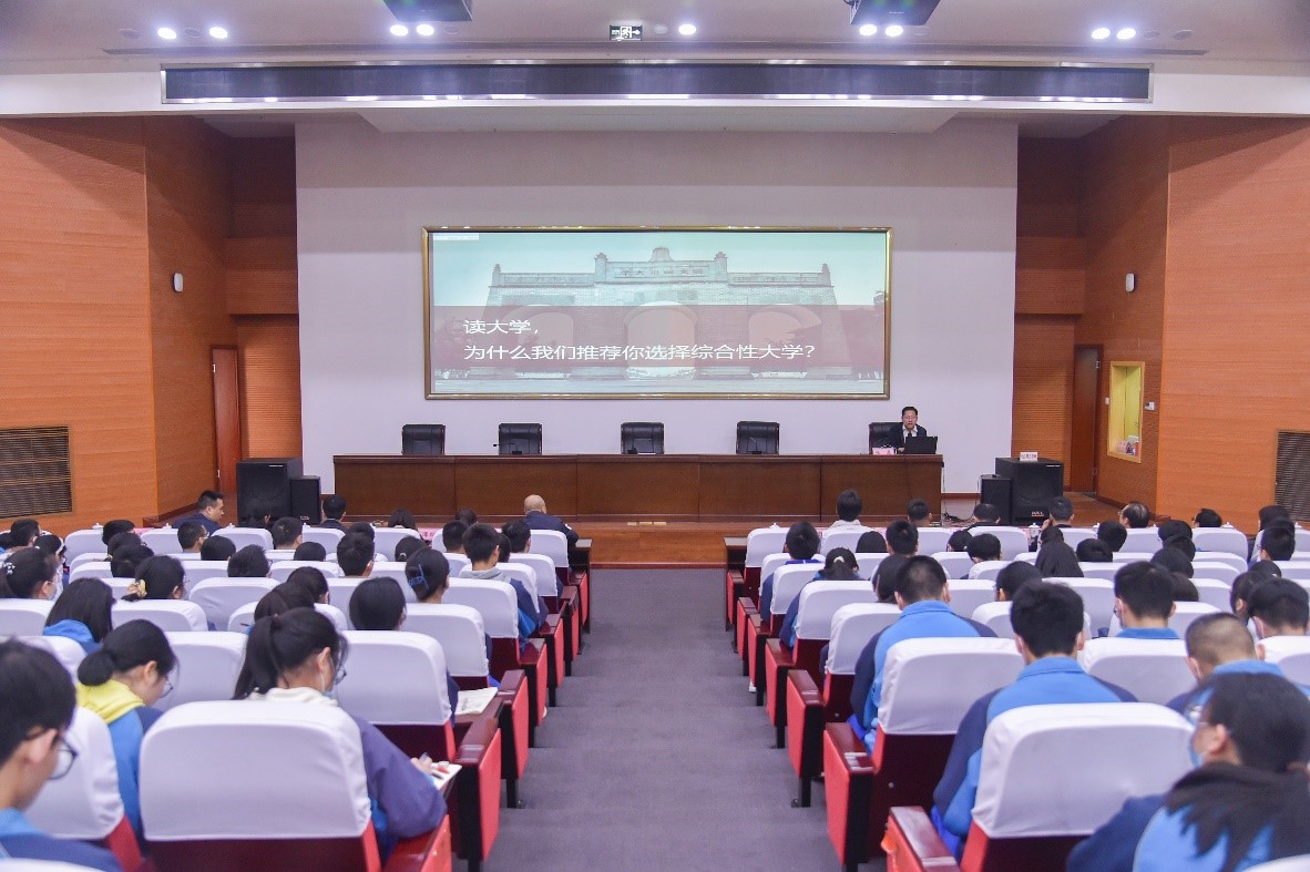 招生宣讲团赴新都一中开展2023年招生宣传工作。新都一中是化工学院招生对接中学,郭孝东院长牵头组织,邀请到校招生办公室张磊主任带队、体育学院、数学学院、化学学院、生命科学学院、高分子科学与工程学院、华西口腔医学院11名院领导、老师组成招生宣讲团。新都一中校长刘旭东,副校长张树华、雷萍,教务处等领导,高三年级班主任代表,200余名优秀学生及家长参加了本次宣讲会。现场反响热烈。