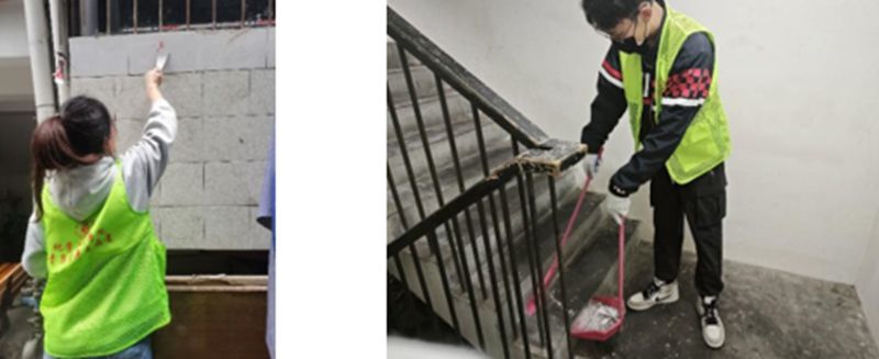 志愿者清理“牛皮癣”和清理楼道垃圾