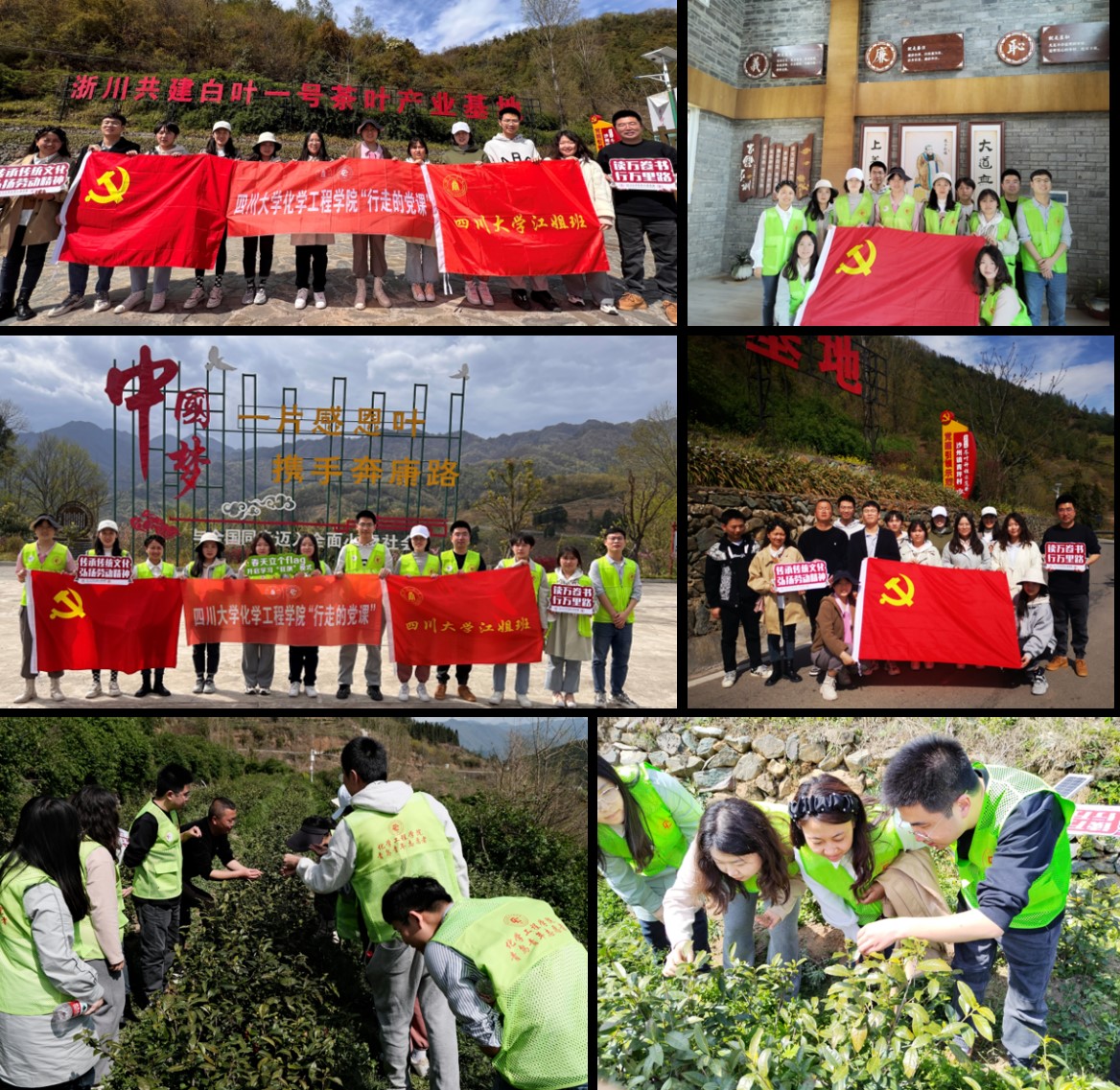 广元青川红色研学、劳动实践活动第一站——走进沙洲镇青坪村。学院师生们在青坪村党支部书记、村委会主任王永明和沙州镇党委委员、组织宣传委员马骥的陪同下,走进青坪村——国家巩固拓展脱贫攻坚成果村级实践交流基地,恰逢2023年“白叶一号”基地的采摘仪式,真切感悟“一片叶子感党恩 携手同心话振兴”。走进茶史馆传承了茶文化,熟知了“白叶一号”的“采摘-堆放-杀青-理条-烘干”制作工艺,了解了“白叶一号”数字驾驶舱平台,大家纷纷感叹“一片叶子,成就了一个产业,振兴了一个乡村”!走进家风家训馆,深刻感受中华民族传统美德中的廉洁思想和家国情怀,发扬优秀的家风家训,廉洁修身!走进茶园基地,放眼望去连绵起伏的茶山春意盎然,经过培训后大家开始忙碌起来,沉浸式体验采茶劳作,十指撷新芽,双手蝶翻飞。