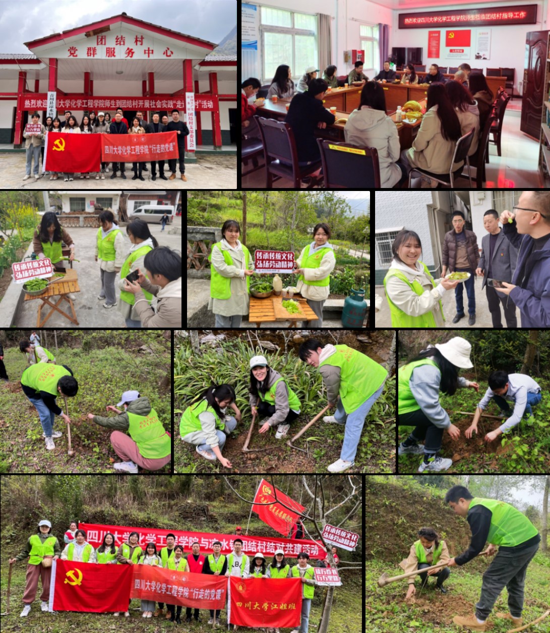 广元青川红色研学、劳动实践活动第四站——走进凉水镇团结村。学院师生在凉水镇党委副书记张正浩,凉水镇组织委员刘鹏,凉水镇统战委员、团结村驻村干部李玉波,团结村党支部书记、村主任付太兴,团结村副主任赵仕安,团结村文书唐代玉,团结村村委资料员赵芳的陪同下,走进团结村,围绕风俗文化、产业发展、规划建设、社会治理等乡村振兴热点问题广泛调研和交流,并实地查看乡村风貌建设、特色农业扶持情况、支柱产业发展情况。走进农户院坝,从民生问题入手畅谈二十大精神,丰富精神文化生活;从品尝劳动美食入手开展“炒家常菜”劳动体验,弘扬劳动精神品格。走进荒山荒地,与广元市党员志愿服务队结对共建完成“学习雷锋光荣劳动”活动,扛着锄头、背着背篓、提着水桶、带着树苗和玉米种,学习雷锋上山种树播种,守护青山绿水助力乡村振兴!