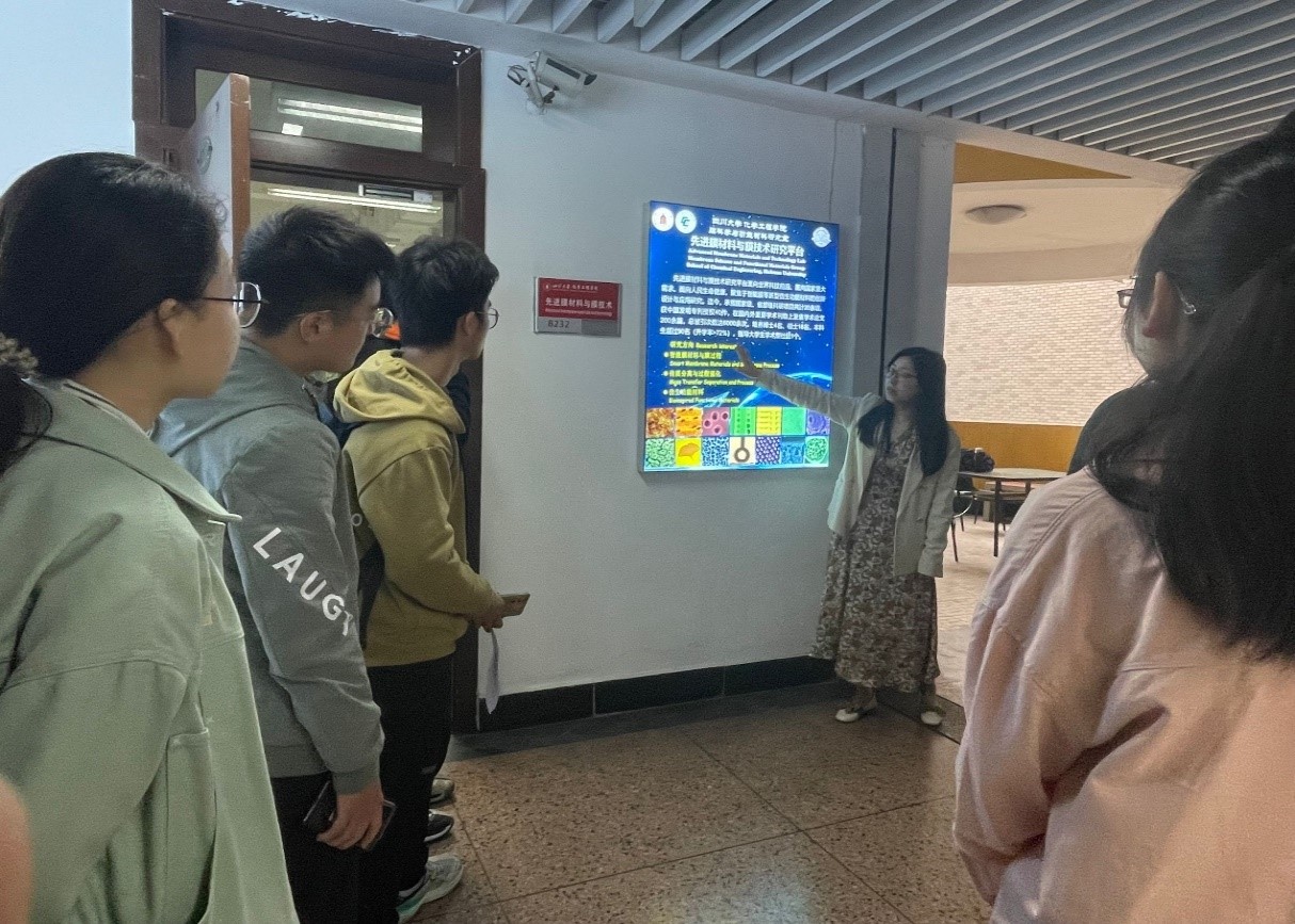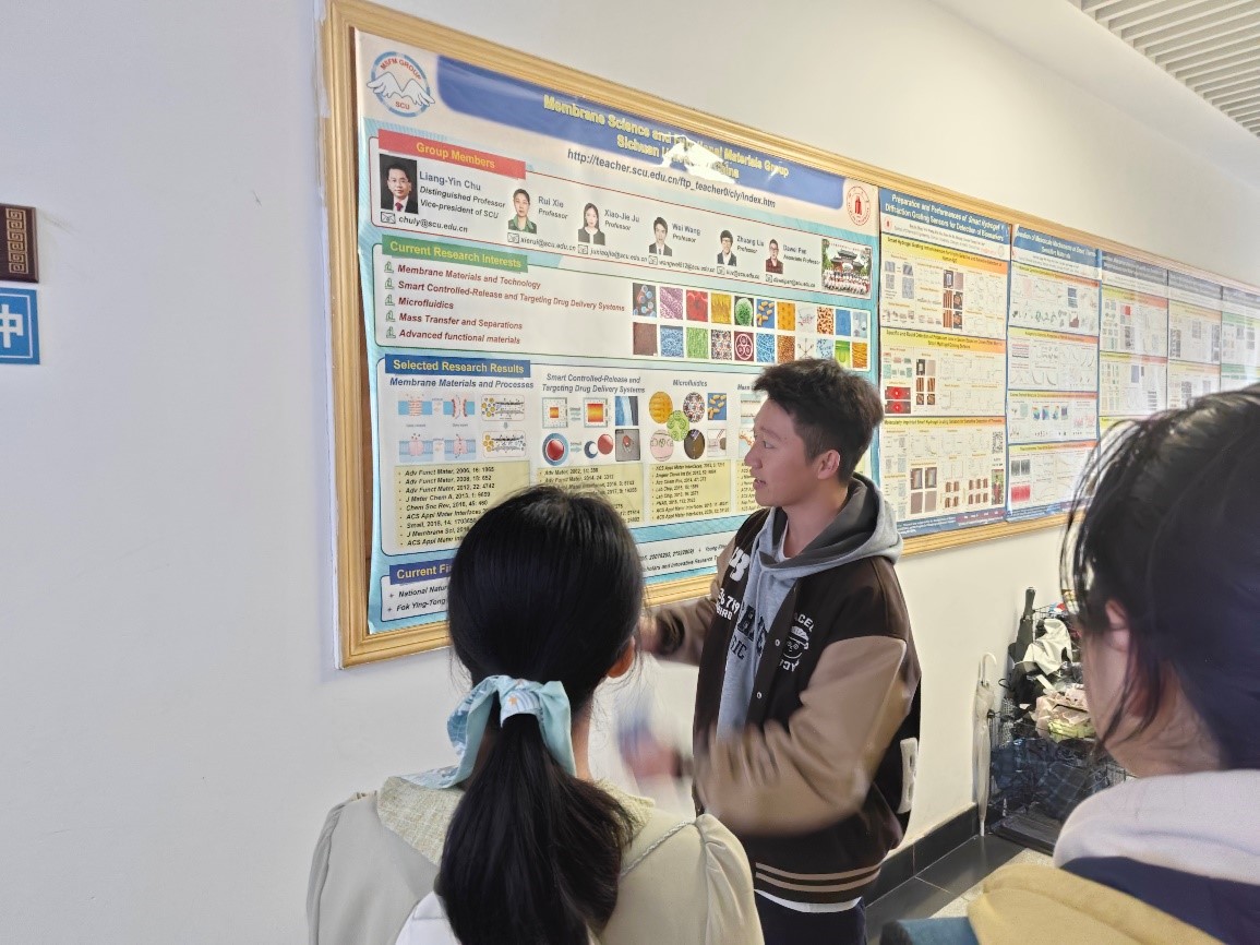 江安校区的第一基础实验楼大门前集合,此次同学们被分为了两组分别进行参观,由学长带着同学们去往不同的实验室再由实验室的老师们为大家一一讲解。大家分别参观了先进能源材料化工与器件工艺实验室、多孔材料与人工智能研究室、环境与能源功能材料课题组、先进材料工程化研究课题组、先进膜材料课题组、低碳技术与化学反应工程研究室。参观过程中,老师们带着大家逐一参观各种仪器并介绍功能,并鼓励同学们去亲自体验,去观察。同学们都十分认真地跟着老师一步步地深入了解各种新奇有趣的科研知识。