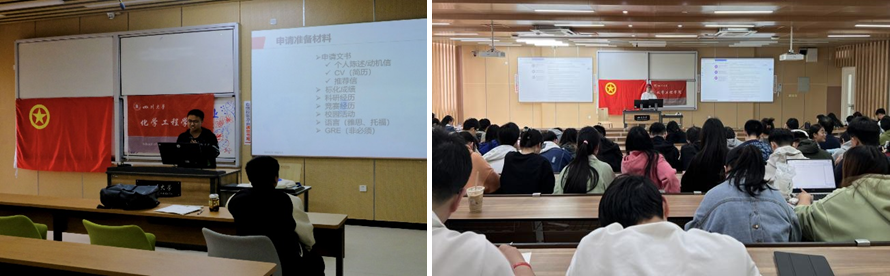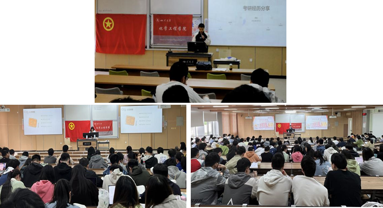 “定盘星”辅导员工作室联合举办“升学大讲堂”之“留学+考研”经验分享会,于2023年4月7日下午在江安校区综合楼C座105、104教室顺利落下帷幕。本期“升学大讲堂”邀请嘉宾为2019级廖鑫柯、欧盼、唐宗剑、刘会如、佘希硕;此外,2021级辅导员李珍珍老师、付率老师以及近300名本科生参加本次活动。