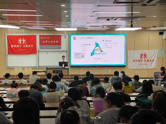 最后,来自匹兹堡学院2021级的唐旻导师向同学们分享了科研和竞赛的经验,她主要从本科科研入门、竞赛之路、课程学习对科研竞赛的重要性以及个人感悟等进行了分享。唐旻导师重点介绍了“国创”、“互联网+”、“大挑”、“小挑”、“国赛”、“美赛”,提供了获取竞赛信息和资源的渠道以及各个竞赛所对应的时间节点,为大一同学做好科研竞赛规划打下了基础。“国创”方面,唐旻导师列出了“国创计划”重点支持领域的项目,并讲解了化工学院“新能源与储能技术”、“绿色环保与固废资源化”等竞赛项目。关于“互联网+”竞赛,唐旻导师给同学们整理了比赛的时间线和各时间段的晋级难度,强调了“互联网+”的竞赛本质,并建议同学们要结合队伍实力正确选择竞赛赛道。最后,唐旻导师阐述了“课程为基础,科研竞赛--锦上添花”的观点,鼓励同学们打好课程基础,再向科研竞赛进发。
