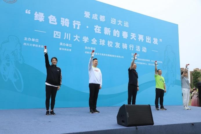 4月22日,学校在成都桂溪生态公园举行以“绿色骑行·在新的春天再出发”为主题的全球校友骑行活动,校党委副书记张伟、成都市体育局党组成员、副局长陈志校友、成都市体育局党组成员、副局长盛钢校友、成都天府绿道集团副总经理黄磊、新华网体育副总经理陶圆,学校校友代表、师生代表出席启动仪式。