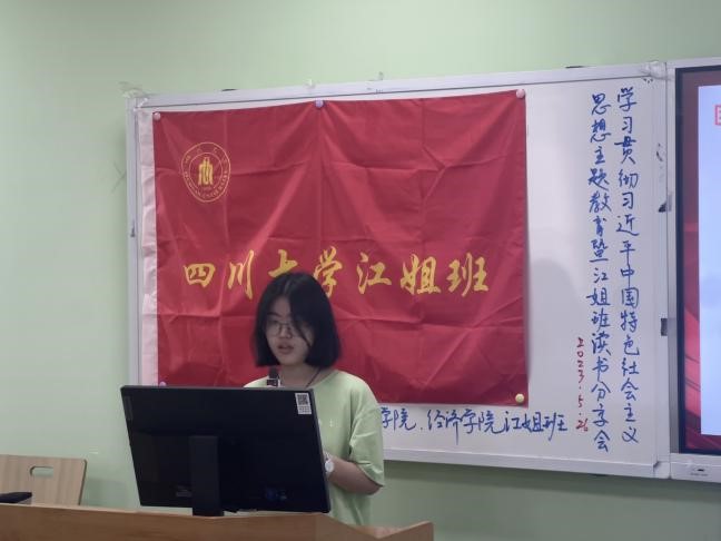 读书会由谢洋同学主持开场,并由毕舒欣同学带领江姐班学生进行书籍导读。本次读书会共同研读的书目是《高举中国特色社会主义伟大旗帜 为全面建设社会主义现代化国家而团结奋斗——在中国共产党第二十次全国代表大会上的报告》。