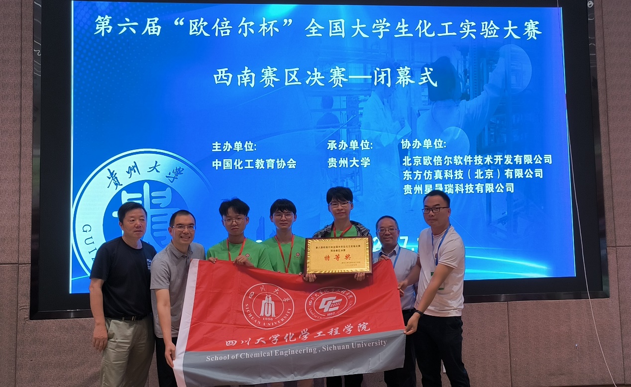 郭炳邑、杨俊和陈松三位同学组建的“川山甲队”于2023年7月13日-7月16日赴贵州大学与来自西南赛区的共48支队伍一起参加了第六届全国大学生化工实验大赛西南赛区决赛。