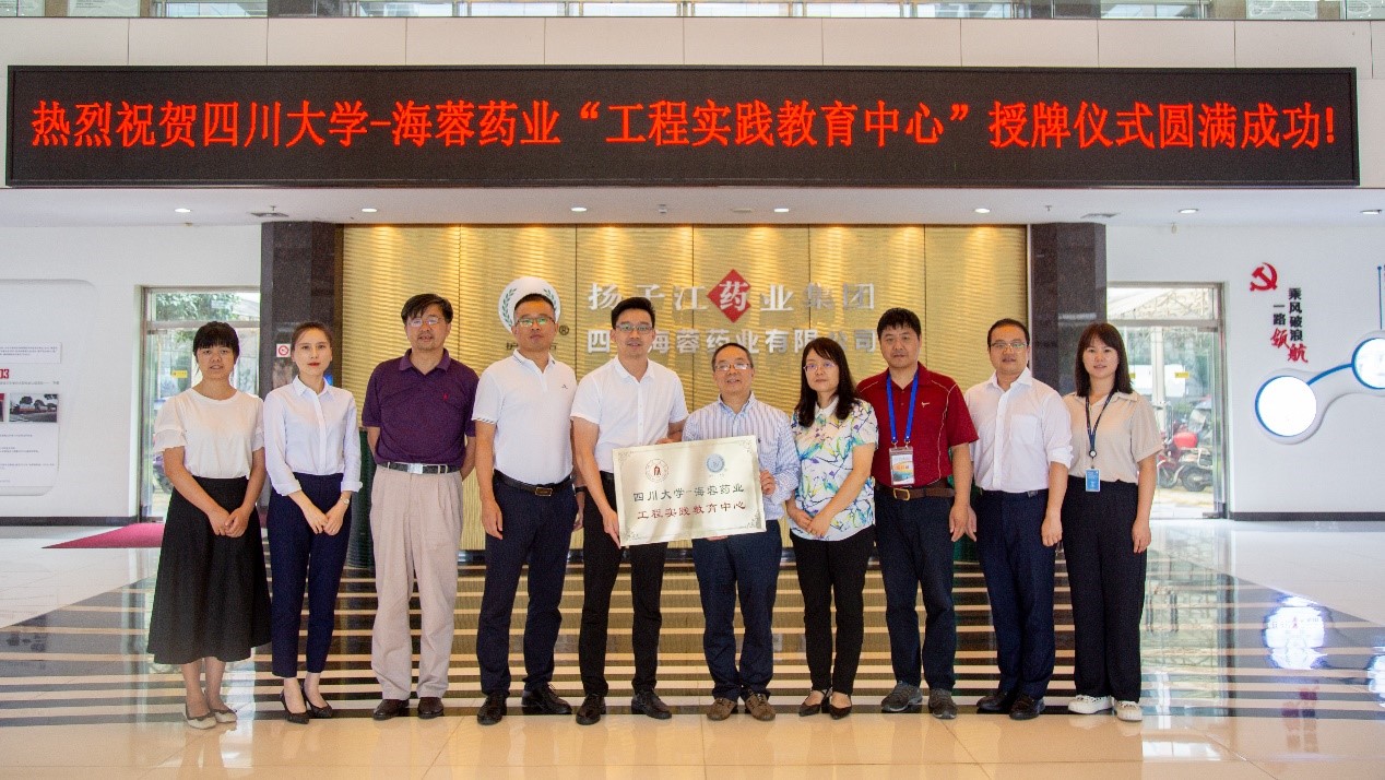 -海蓉药业工程实践教育中心”揭牌仪式在扬子江药业集团海蓉药业有限公司隆重举行。海蓉药业厂长曹义海、副厂长韦军及相关部门负责人、污污漫画