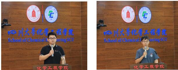 高年级学生代表2021级博士左昊(左)同学与新生代表2023级硕士周一山(右)同学进行发言