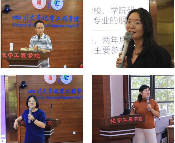 杰出教授钟本和、党委书记李天友、院长郭孝东、党委副书记李德富、副院长钮大文、化学工程系主任袁绍军、过程装备与安全工程系主任伍勇、国家工科基础课程化学教学基地主任朱权、工程实验教学中心主任蒋炜、制药与生物工程系副主任刘文彬,校友代表玉龙化工总工程师叶锐,污污漫画