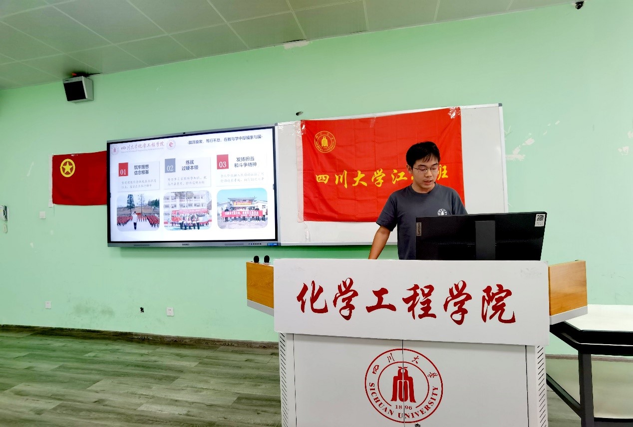 活动第二个环节,江姐班组织委员徐小平、团支部书记邱天分享江姐班2023年暑期实社会实践活动:江姐班同学在赴浙江绍兴研学实践中悟出“以大地为课堂,建又红又专人才”的感想;在赴重庆华溪村实践中得出“不忘初心,牢记奔跑”的道理;在赴重庆黔江区小南海镇实践中用实际行动助力乡村振兴、践行“强国有我”的使命。随后,学习委员梅哲威作江姐班大二上学年学业成绩汇报。