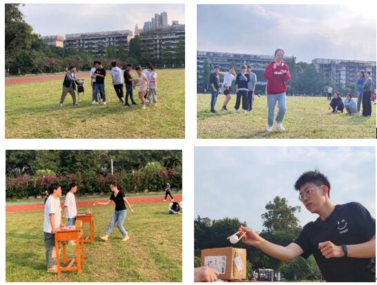 活动开始后,由文艺体育中心部长丁宁波组织参赛成员按小组排列并介绍比赛规则。活动第一项——合力吹气球比赛考验参赛团队的默契与合作,为了最快完成任务,队员们都争先恐后,拿出自己的最好水平。从抢气球,到吹气球,再到用腿夹气球,最终坐爆气球,参赛队员们一环接一环,环环相扣,虽然过程中有小插曲,但最终都顺利完成了任务,体现出了团队合作,友谊第一,比赛第二的运动精神。