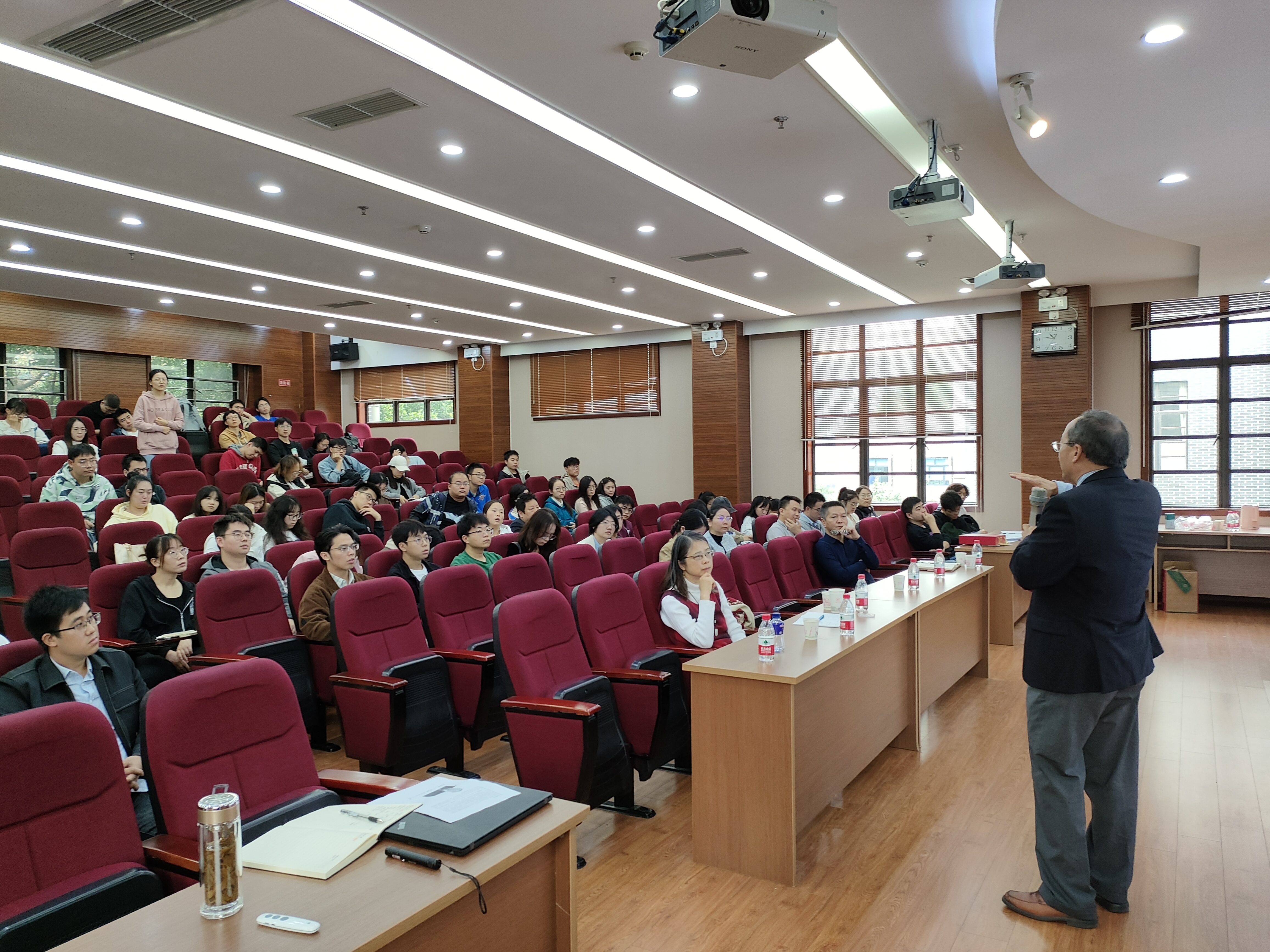 首先,余教授对今年诺贝尔化学奖得主的工作进行了介绍,分析了量子点可控合成的重要性和目前存在的问题,对量子点的合成机理提出了见解。接着,张金中教授从研究量子点的动机展开,分析了量子尺寸效应对能级及光谱的影响机制,提出了稳定材料结构的掺杂、钝化等策略,探讨了新型高效平面配体、量子点和团簇尺寸效应,从组成、结构、电荷传输等角度剖析了团簇和量子点。最后,张教授分享了他几十年来的科研心得及一些科研方面的意外有趣发现,对量子点材料的未来发展方向进行了展望,并欢迎学生积极交流论文撰写、投稿等工作。