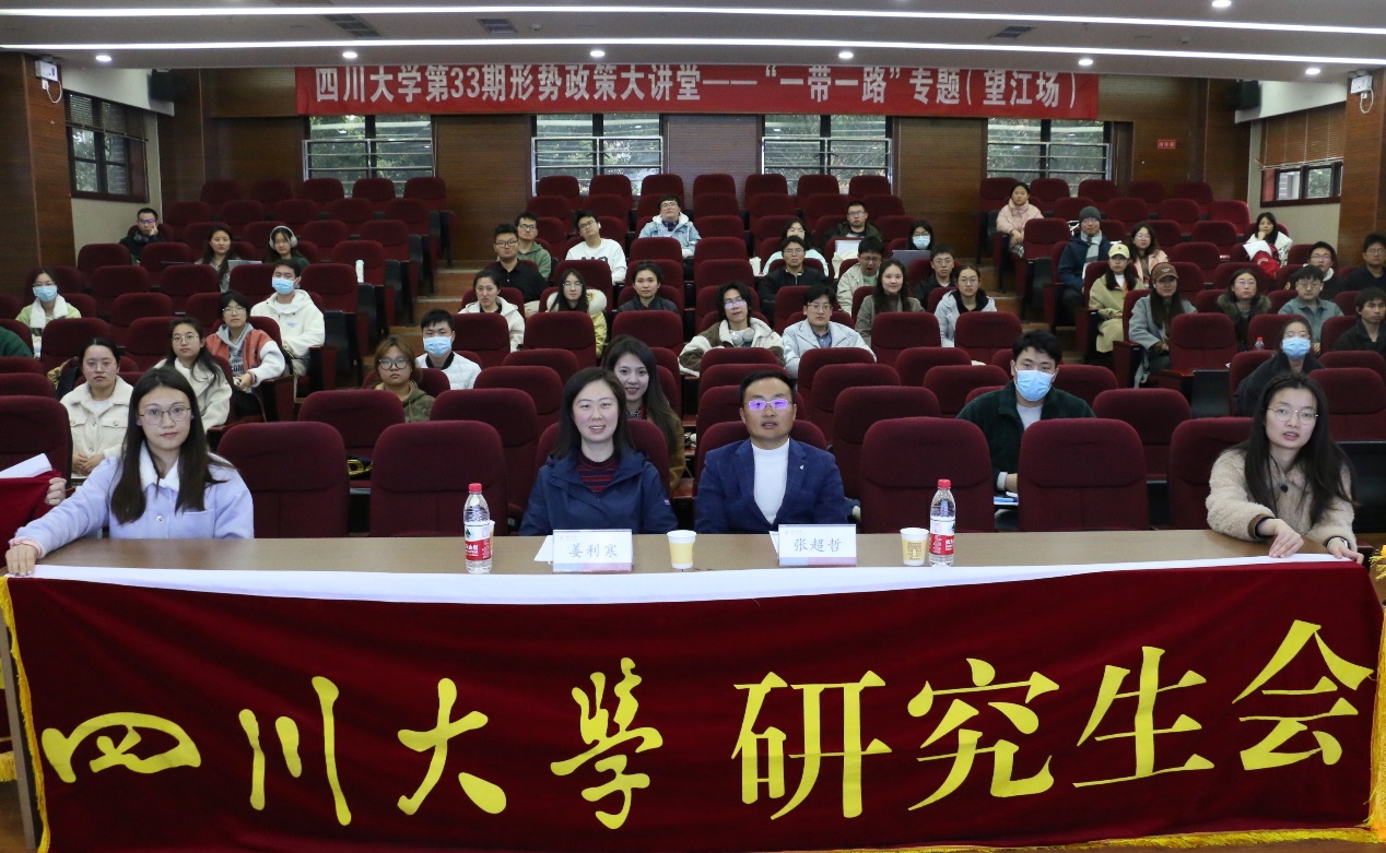 张超哲阐述了共建“一带一路”的历史渊源和理念愿景,总结了“一带一路”建设十年丰硕成果和实践成就,分析了高质量推进“一带一路”建设存在的风险和挑战。他指出,川大在服务国家“一带一路”建设中有基础、有优势、有特色。希望广大青年积极发挥作用,不只做“一带一路”的受益者,更要做积极参与者和实质贡献者。