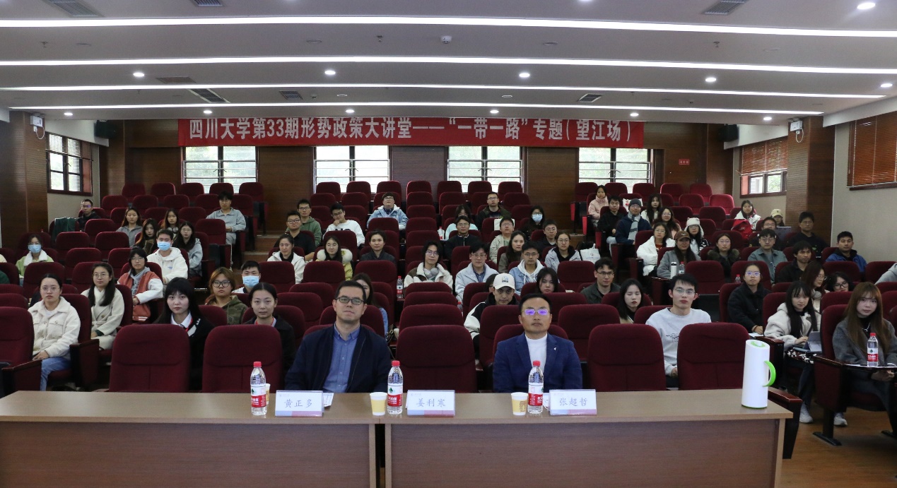 党委副书记、副研究员姜利寒,国际关系学院党总支副书记张超哲以及南亚研究所副教授、尼泊尔研究中心主任黄正多作为主讲嘉宾应邀参加本次讲座。讲座吸引了百余名川大学生积极参与。