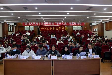 研究生工作部副部长卢莉、文学与新闻学院教授刘颖、华西公共卫生学院特聘副研究员章炜、物理学院研究员林炜平、华西公共卫生学院副研究员蒋静文、电子信息学院副研究员陈洪刚、机械工程学院副研究员谢罗峰作为评审专家出席本次会议。“百花齐放、百家争鸣”,来自不同学院的35名“学术之星”候选人参与此次答辩,并吸引了百余名不同专业的学子与会。