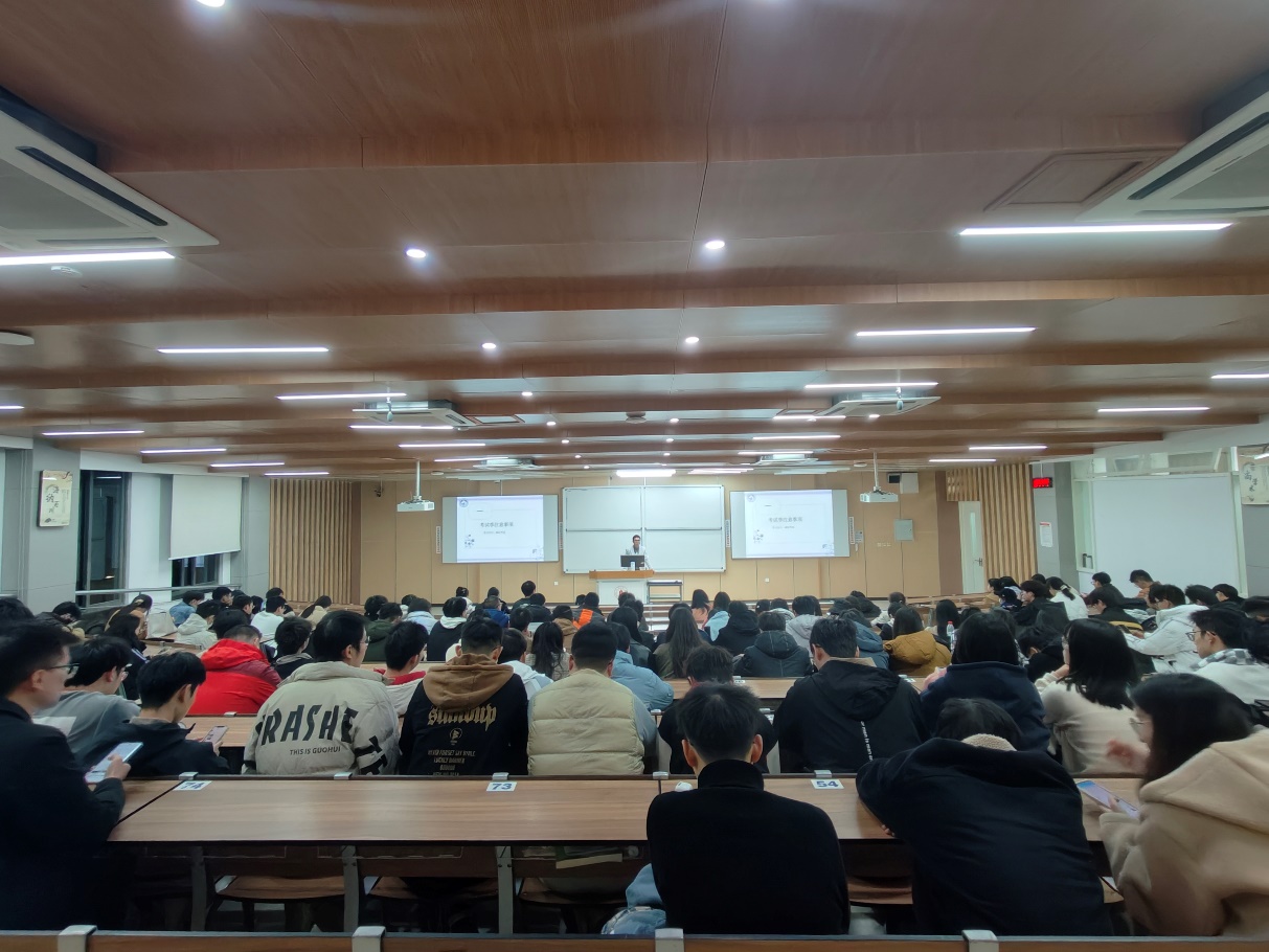 年级大会,持续教导。12月6日晚上,在江安校区综合楼C座304教室召开了江安校区研究生安全工作会议,会议由邓磊老师主讲。在这次会议上,邓磊老师向江安校区研究生说明了前期宿舍和实验室走访的结果,和各位研究生强调了冬季甲流、支原体等传播严重,研究生同学更需要做好自身防护,合理安排好自身休息时间;在科研过程中要注意消化自身负面情绪,有问题及时沟通;骑电动车过程中一定要注意速度和个人安全,不要违规充电等事宜。最后,两位老师和同学们说明了进入即将进入考试月,同学们一定要复习充分、诚信考试,科研和工作做好自身规划。