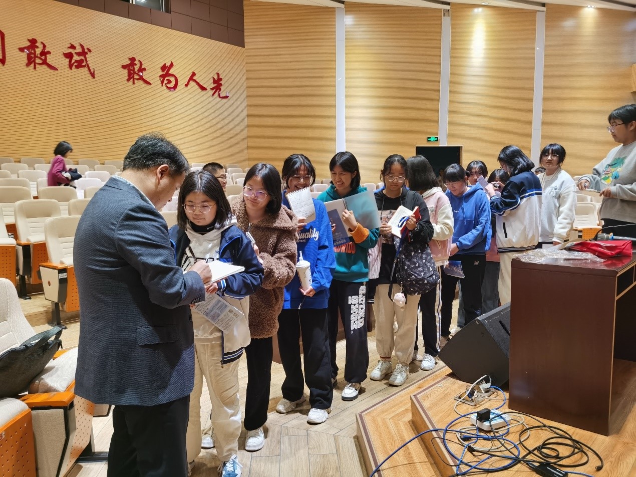 临床医学院求学、一路奋斗、留校工作并成为国家级重要人才的成功经历。他鼓励同学们一定要始终保持对未知事物的好奇,自信乐观、不畏困难、勇于创新。在场同学们都深受鼓舞、倍感振奋,在讲座结束后排起了长长的队伍,请郭教授签名。郭教授认真的为每一位学弟学妹写下了鼓励、祝福的话语,签下了自己的名字。
