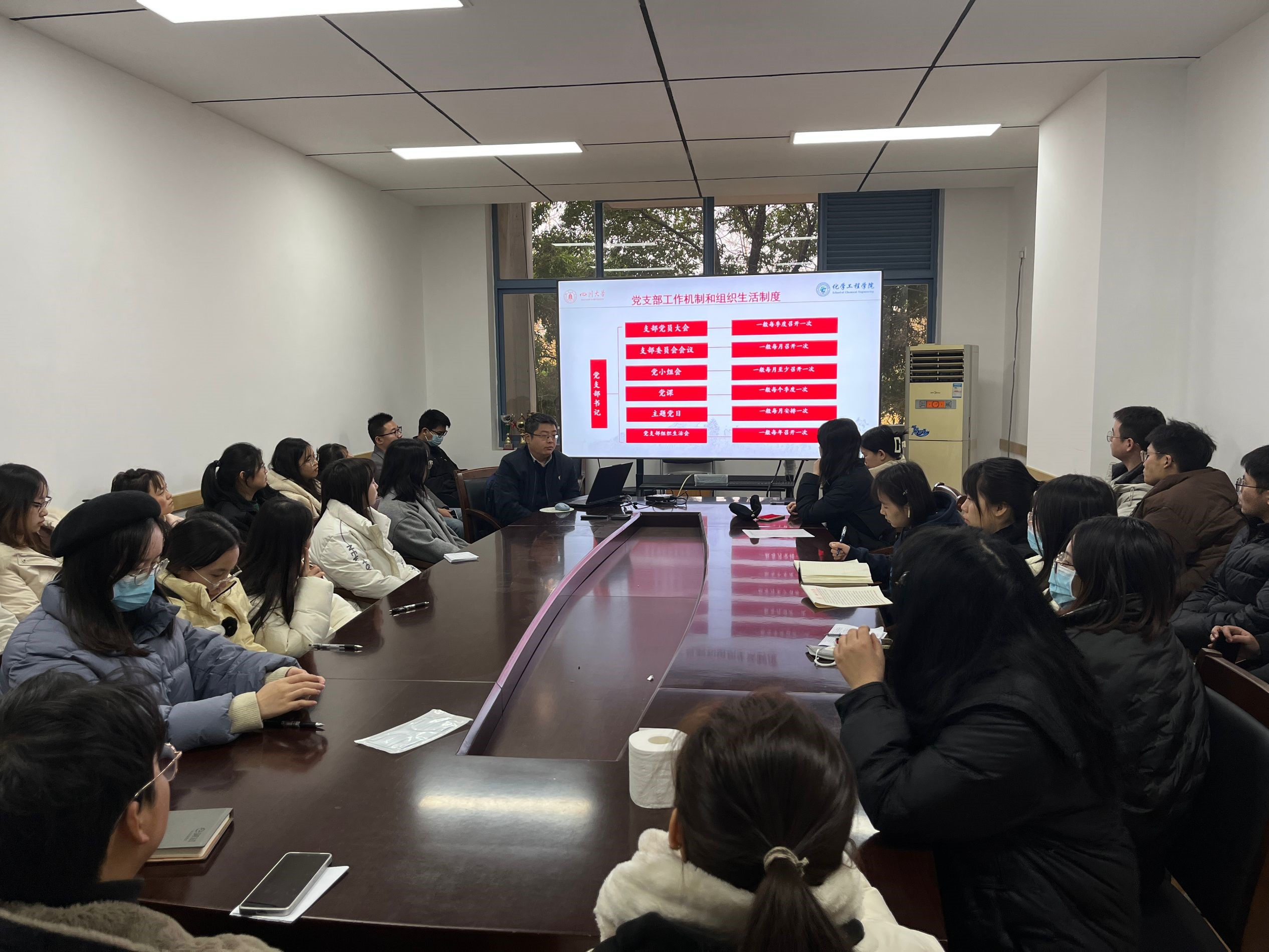 研究生第三党支部作为党的基层支部,是党的思想宣传和理论教育的重要阵地,是通过各种集体学习引导大学生树立正确的世界观、人生观和价值观,以增强党性观念和组织纪律性的重要支柱。因此,为提高学生党员的凝聚力和战斗力,为党的事业发展提供坚实的组织保障,2023年12月15日,支部有幸邀请到学院党委副书记兼纪委书记李德富,于江安校区一基楼B218开展了以“以标准化规范化建设推进一流党支部建设”为主题的专题党课学习,深入探讨作为基层党组织中青年学生我们,应当怎样为一流党支部设添砖加瓦。此次专题党课由研三支部书记余慧敏主持,组织委员郑艳宇同志确认到场人数,党员和入党积极分子40余人参加活动。