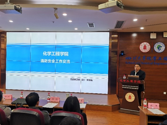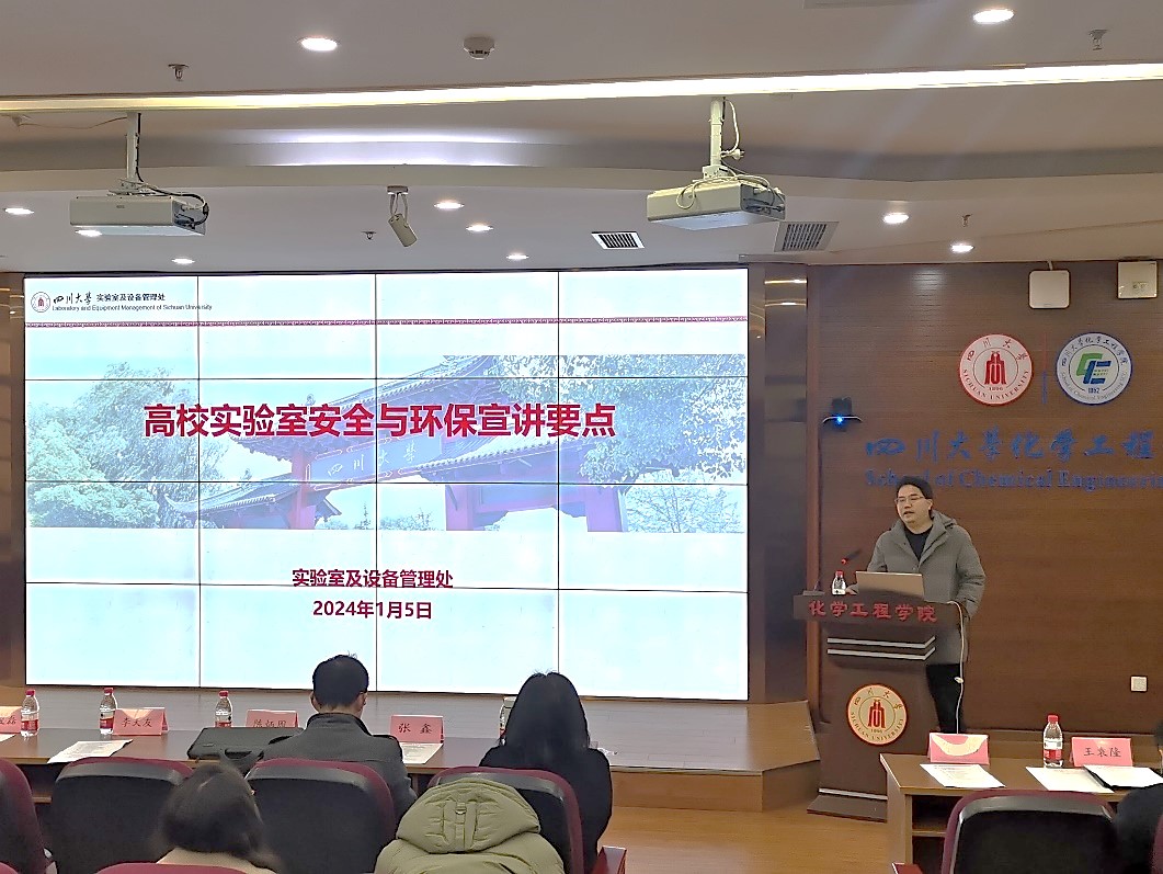实验室安全管理水平,确保教学科研实验的安全有序运行,元月5日下午,学院在望江正行楼313报告厅组织召开了2024年度消防与实验室安全培训会。学院党委书记李天友、学校党委保卫部(处)张俊磊副部(处)长、学校实验室及设备管理处陈炳周副处长、学院安全专家蒋炜、欧阳李科、吕松、李眉眉、张鑫、王袁隆等应邀出席,院内各课题组80余名安全员参加了此次安全培训。学院党委副书记兼纪委书记李德富主持会议。