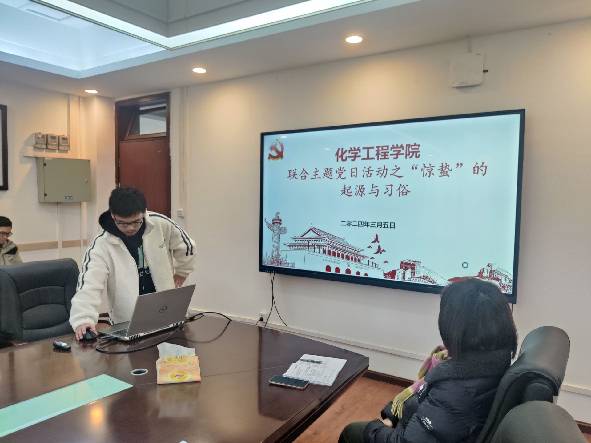 研究生反应工程党支部的姚宏同志为大家讲解了“惊蛰”节气的起源、习俗和与中国传统文化交融的诗歌。惊蛰是一个充满生机和活力的节气,它的到来标志着春天的正式开始。在这个特殊的时刻,人们通过各种习俗来庆祝和祈求新的一年的平安和丰收。也希望通过党员的实际行动,弘扬雷锋精神,传承中华优秀传统文化,同时结合惊蛰的节气特点,开展有意义的志愿服务活动,提升党组织的凝聚力和战斗力。