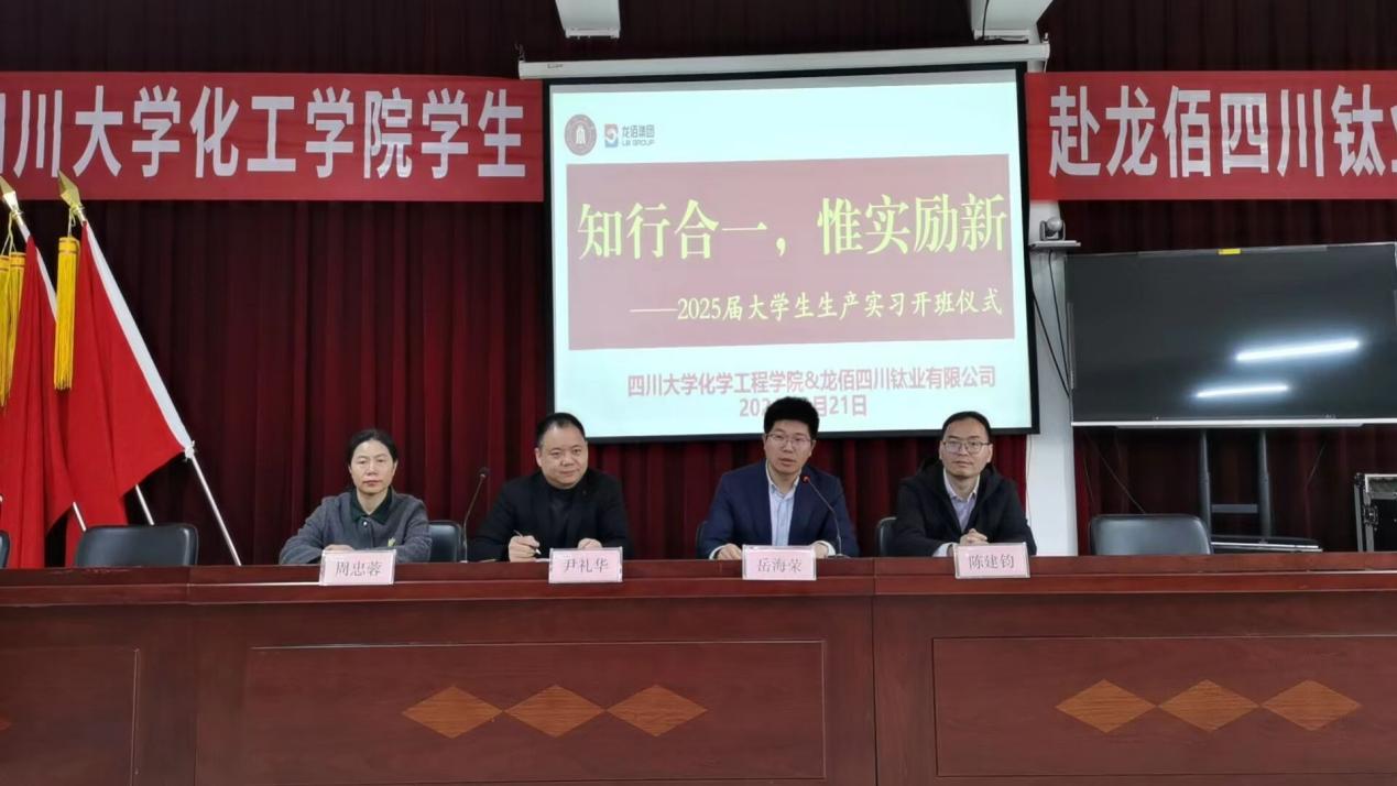 龙佰钛业人行部长杨万梅女士向同学们介绍了龙佰企业发展和人才规划,并对同学们的生产实习安排进行了介绍。龙佰集团股份有限公司致力于新材料研发,已建成“钛、锆、锂”三条产业链和创新耦合发展体系;成为钛白粉、钛锆金属、电池材料、锆材料等四大绿色新材料制造领域的佼佼者,主营产品钛白粉、海绵钛稳居全球第一梯队,新能源材料磷酸铁产能规模跻身全国行业前列。