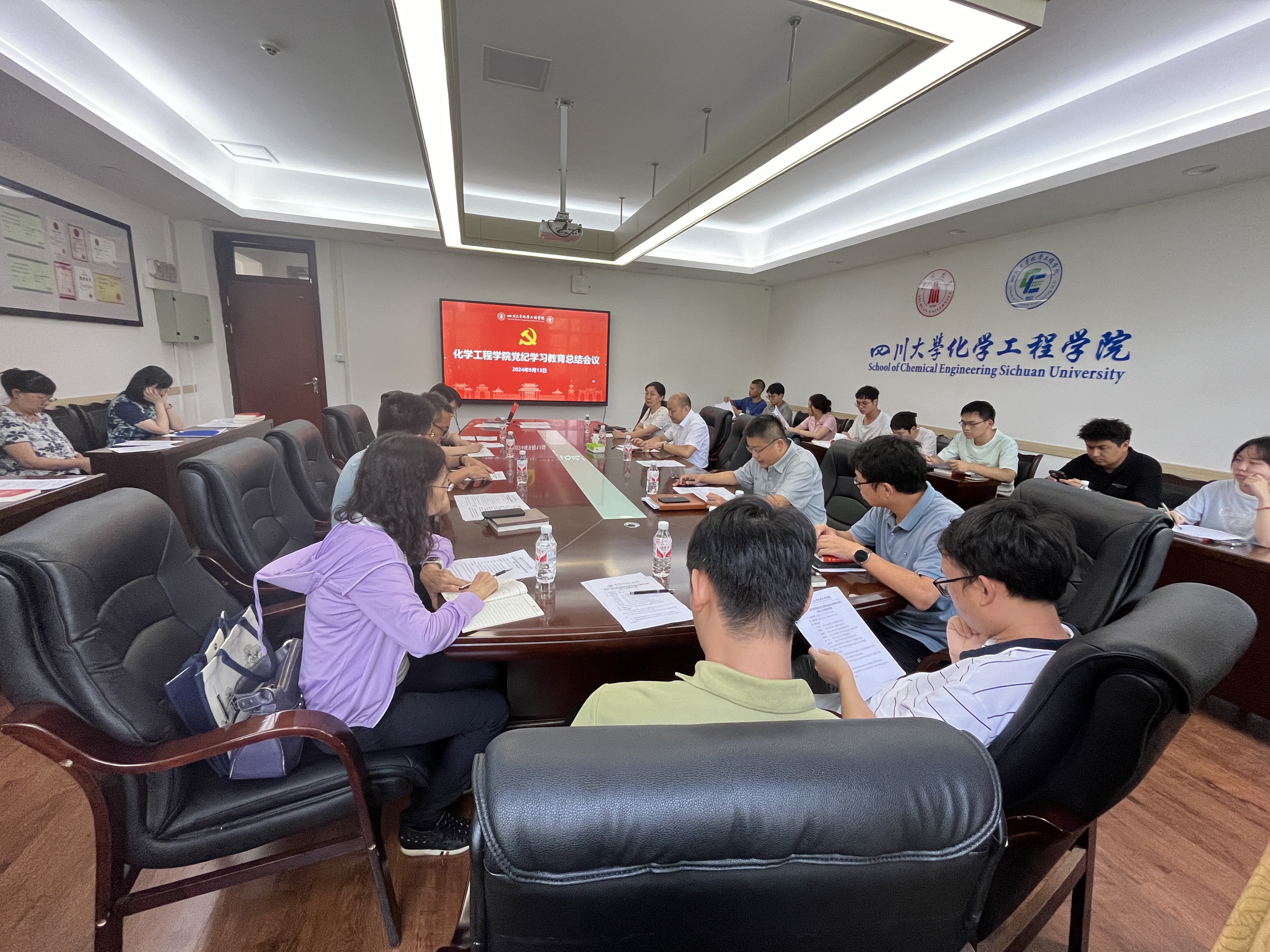 在望江校区化工楼召开学院党纪学习教育总结会议暨党支部书记工作例会。学院全体班子成员,院党委委员、纪委委员,全体党支部书记等参加会议。会议由学院党委副书记兼纪委书记李德富主持。