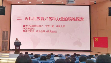 随后,李天友从三个方面讲述中国共产党成立。19世纪和20世纪初中华民族经历的苦难、近代民族复兴各种力量的艰难探索、五四运动和马克思主义在中国的传播,让同学们对中国共产党成立进程有了更深入的认识。同时,李天友就三个方面——中国共产党成立的时代背景、中国共产党的创立与中国共产党成立的时代意义进行了细致讲述,引导同学们从中国共产党的成立进程汲取力量,深刻认识到中国共产党的成立是中国近代史上开天辟地的大事变。