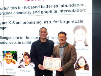 吴屹影教授课题组长期专注于能源转换和存储的材料化学与界面研究。讲座上,吴教授从金属的基本性质展开了钾电池的故事,由浅至深地讲述了钾基电池的意义、优势和面临的挑战,针对钾基电池存在的问题提出了相应的策略,给听众提供了解决问题的思路。随后,吴教授也对ACS(美国化学学会)期刊进行了介绍,讲解了ACS Applied Energy Materials期刊的最新动态、投稿要求以及期刊的影响力和未来发展方向。
