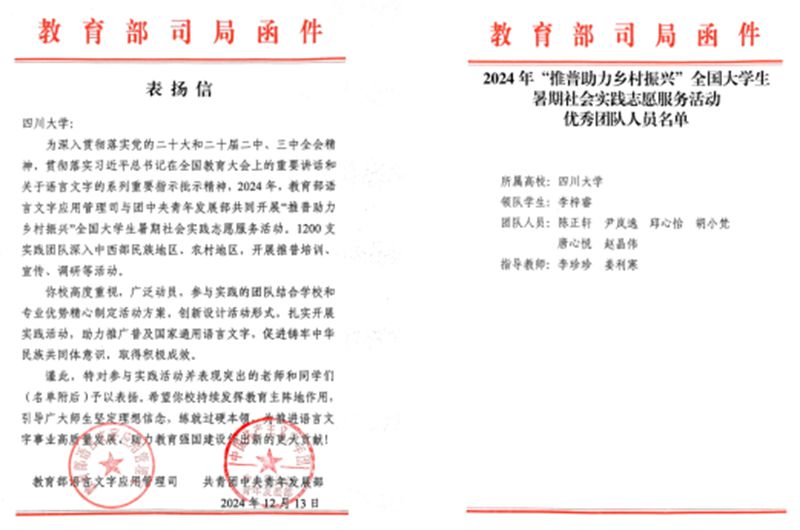 组织赴四川省凉山彝族自治州昭觉县的学院重点团队“青系昭觉·彝路生花”志愿服务队荣获“优秀团队”称号。教育部语言文字应用管理司、共青团中央青年发展部给污污漫画