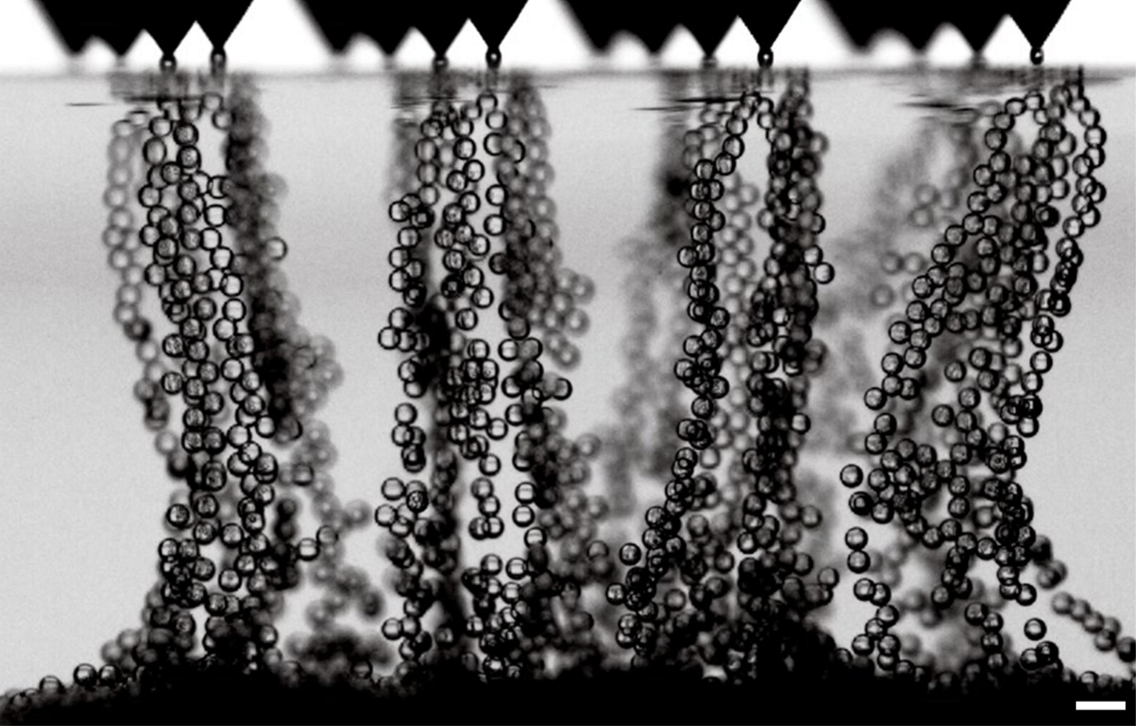 液滴微流控技术为材料科学、化学合成、生物医学等领域带来了深刻变革。现有微流控技术主要依靠微通道内两液相剪切导致的Rayleigh-Plateau不稳定机制来形成液滴,其高度依赖于液相物性和流动状态,导致液滴品质易受液相物性、流速等影响,过程鲁棒性低,限制了其规模化工业应用。
